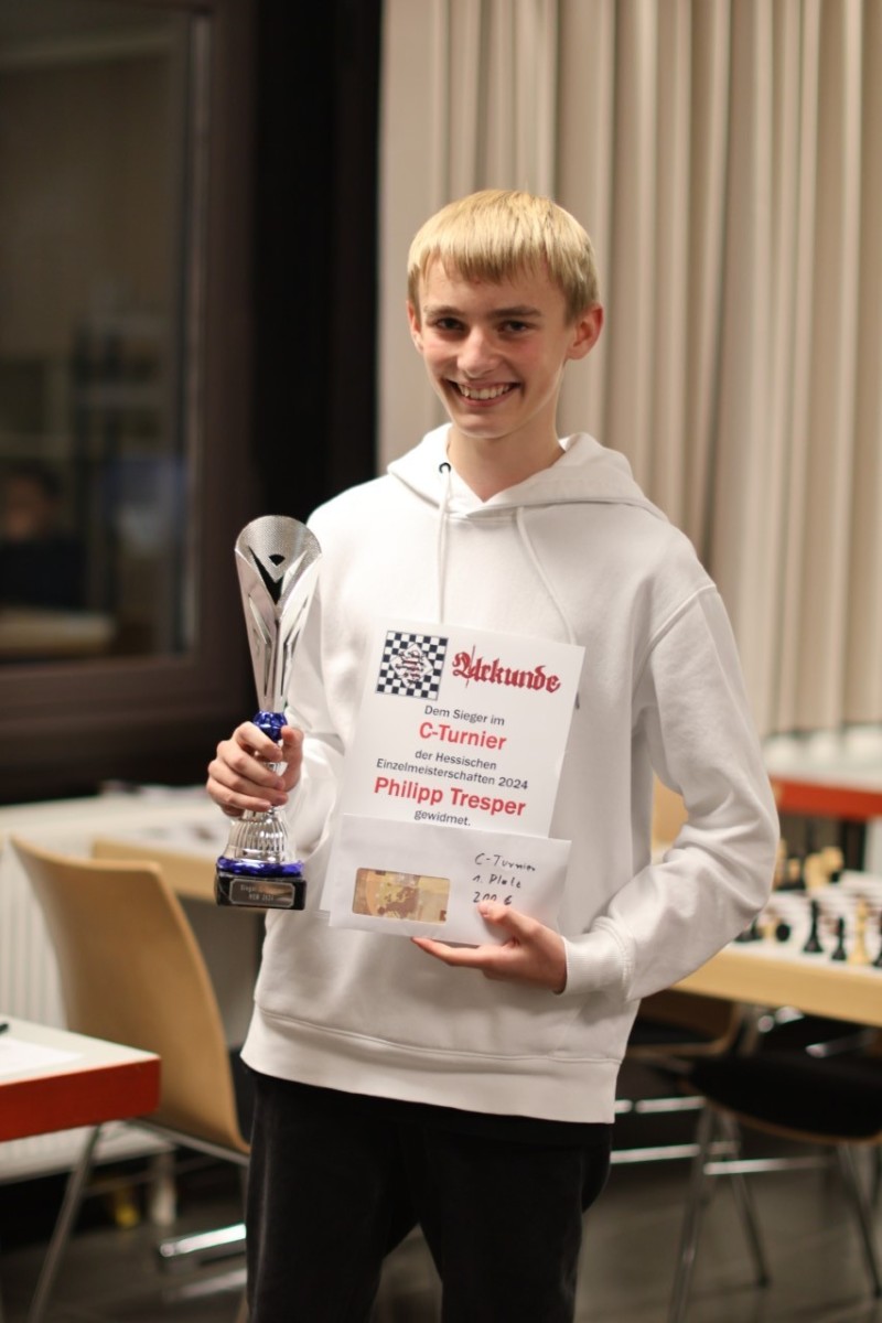 Auch im C-Turnier gewann mit Philipp Tresper (Schachforum Darmstadt) ein Starkenburger überzeugend. Er ließ mit 6½ Punkten aus 7 Runden die Konkurrenz klar hinter sich.